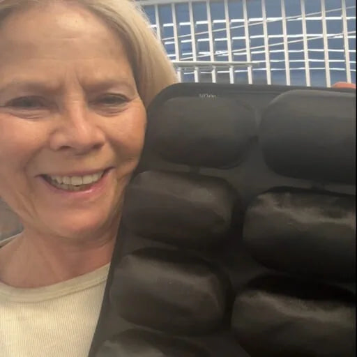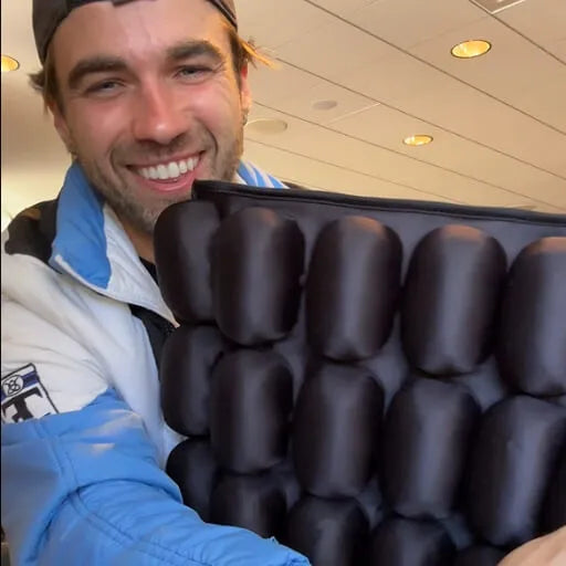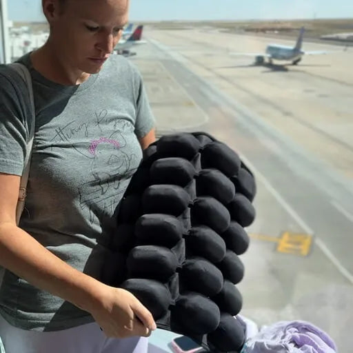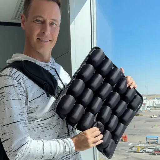 The KŪMO travel cushion features 24 Air Cells that contours and hugs your bottom, redistributing pressure for unparalleled comfort and support. Even on the most thinly padded, uncomfortable seats, sitting on this cushion will feel like you're on a bed of soft, plush clouds, allowing you to sit comfortably for hours without back, bottom, or tailbone pain.