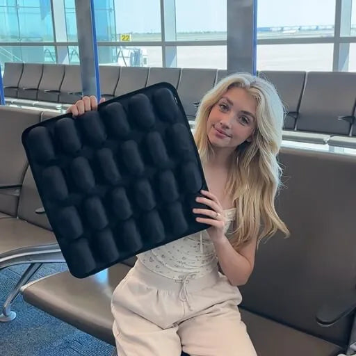 Many travelers say the cushion helps a lot with back, tailbone, and hip pain. Its 24 air cells spread out your weight evenly and gently support your body, so you can sit comfortably for hours.