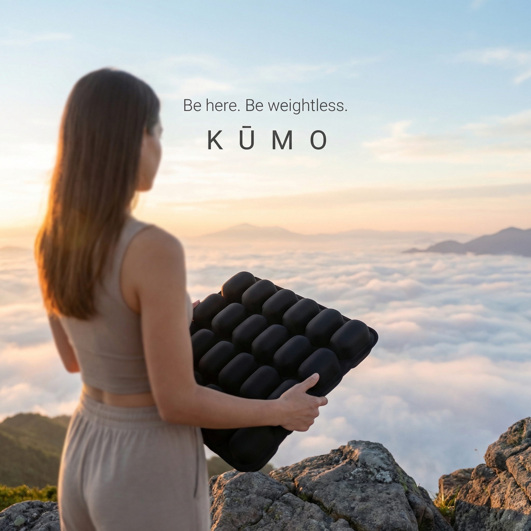KŪMO is a precision-engineered air cushion that transforms any seat into a cloud. Designed in Japan. Inspired by the philosophy that your journey...the flight, the commute, the long day - deserves presence, not just patience.